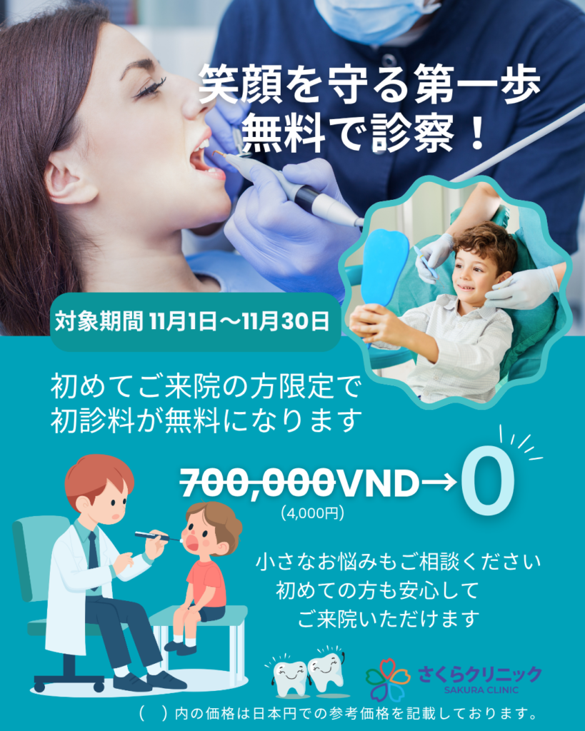 2025.10.27笑顔を守る第一歩をサポート!さくらクリニック歯科では、初めてご来院される患者様を対象に、期間限定で初診料を無料とさせていただきます。