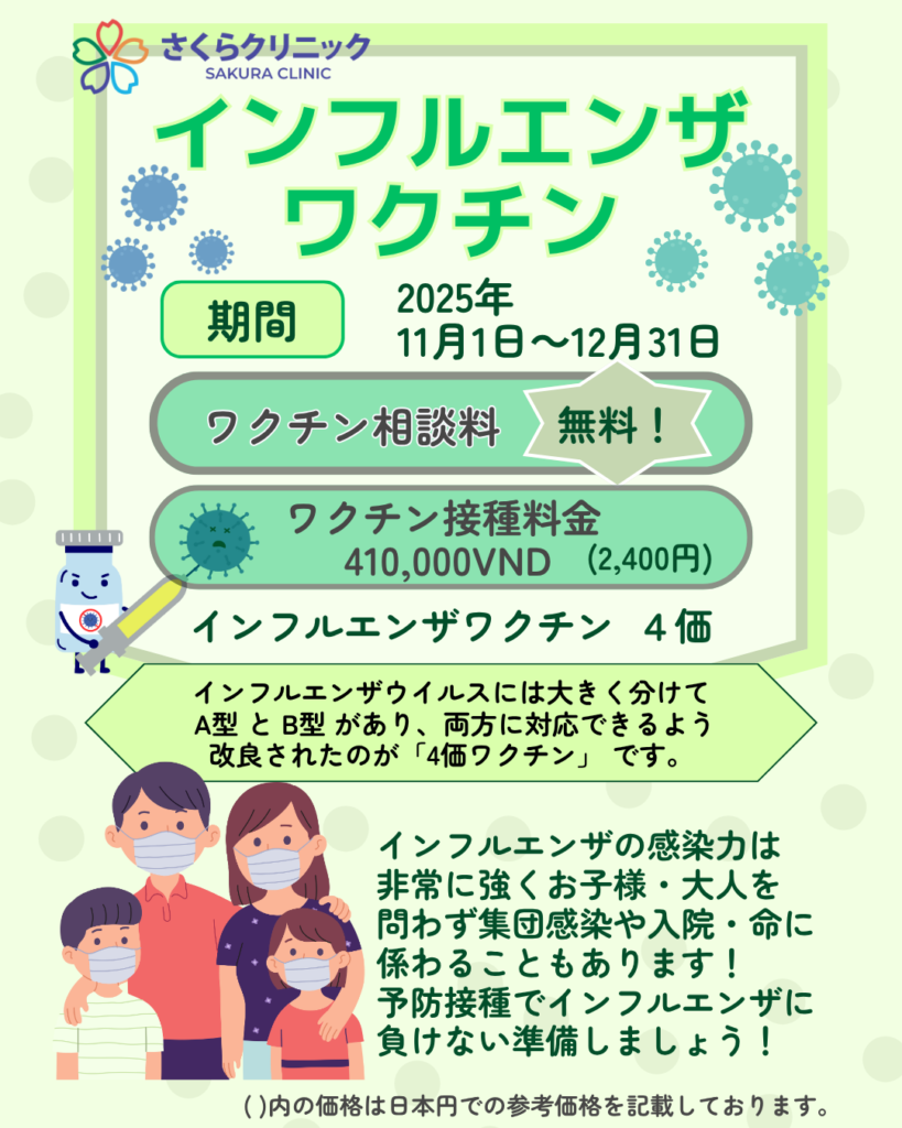 | ワクチン接種料金 | 410,000VND (参考価格:2,400円*) |